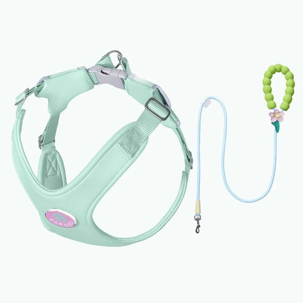 Discover our Adjustable Dog Harness and Leash Set , the ideal solution for walking your four-legged friend in style and comfort. This lightweight and breathable vest harness is specially designed for small and medium dogs, providing optimal support while ensuring great freedom of movement. Made from neoprene fabric and featuring zinc alloy buckles, this harness is both robust and stylish.