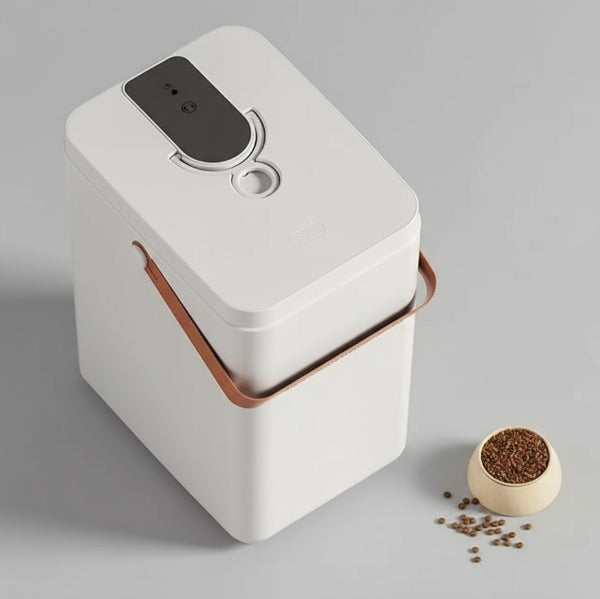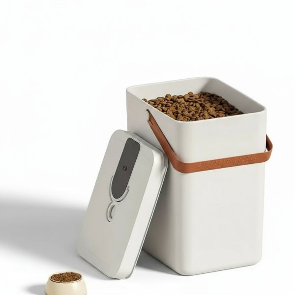 Discover the vacuum-sealed kibble box for dogs and cats, designed to preserve the freshness of your four-legged friends' food.