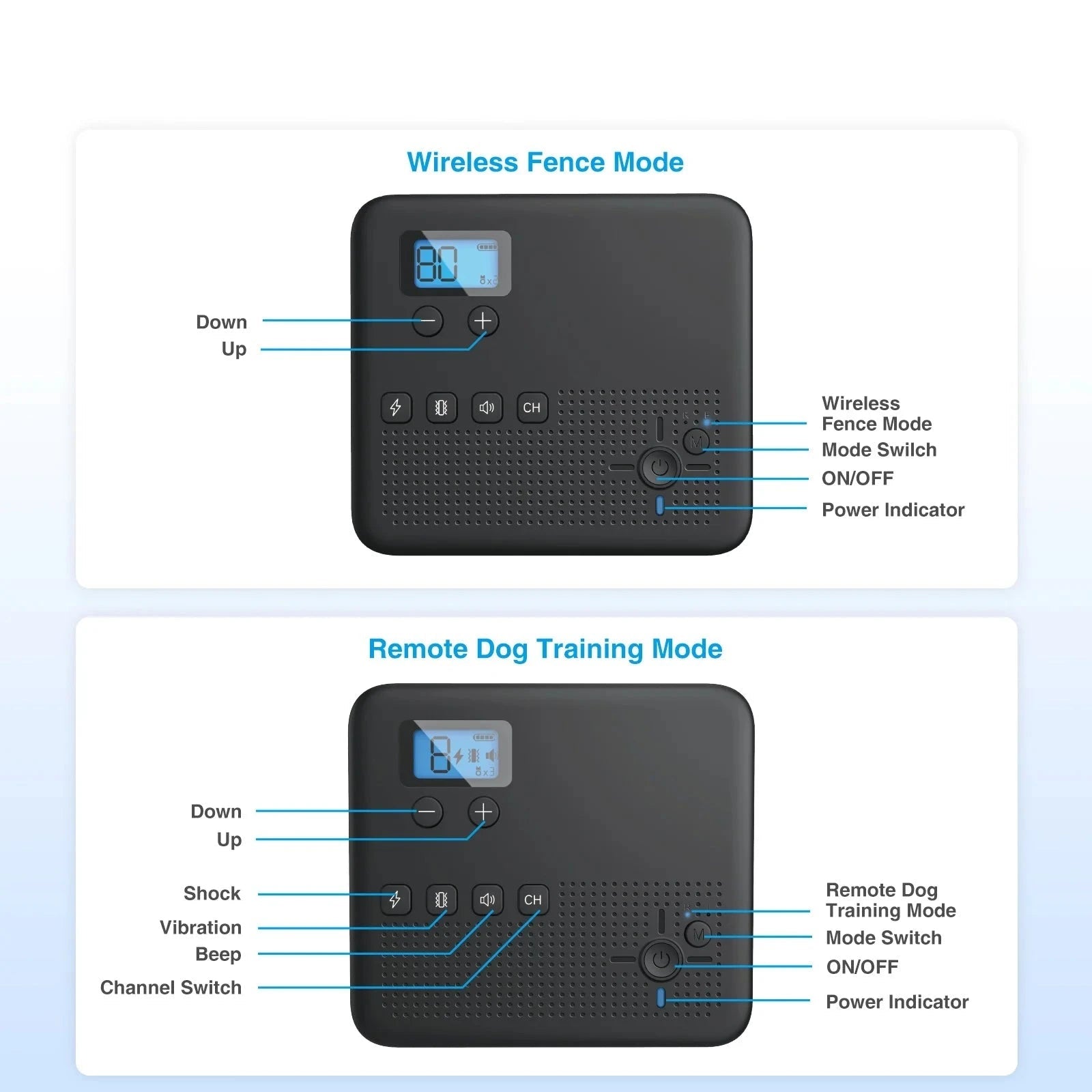 • Practical Training Mode: Transform the collar into a training tool; use the base as a remote control for optimal control.