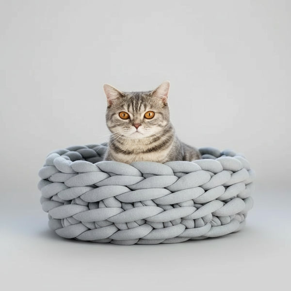 Transform your cat's sleeping area into a haven of peace with our designer cotton woven cat basket . Order now and treat your pet!
