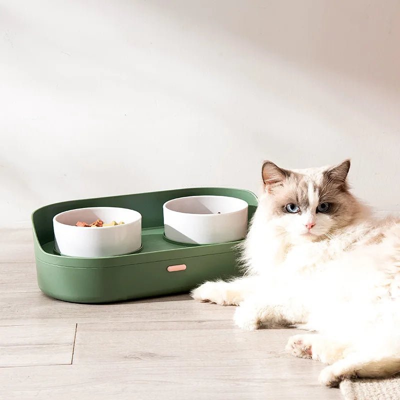 Découvrez notre support multifonctionnel, conçu pour allier esthétique et praticité dans l'alimentation de votre animal de compagnie. Ce support élégant est équipé de deux bols en céramique de haute qualité, parfaits pour l'eau et la nourriture.