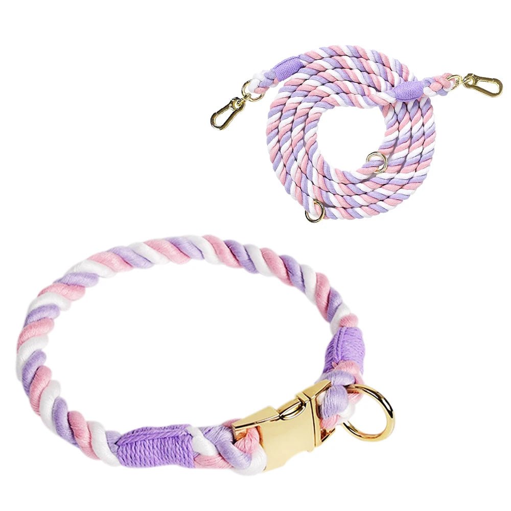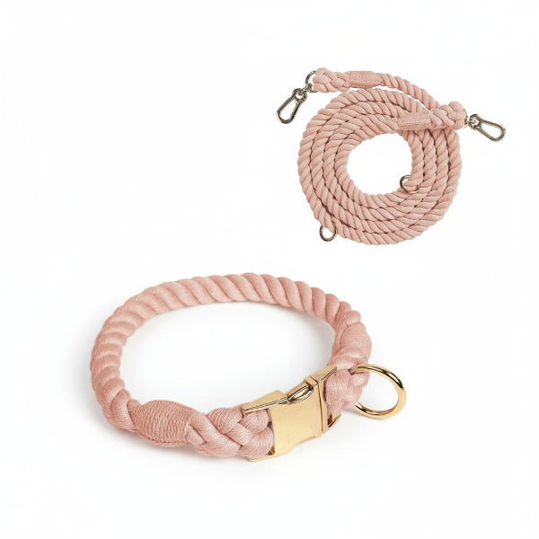 Ensemble collier et laisse en coton torsadé avec attache rapide